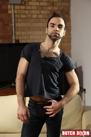 Andy Blue jerks thick hairy dick for sweaty show