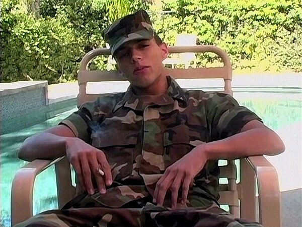 Army boy Rico Mantos jerks big cock outdoors in uniform