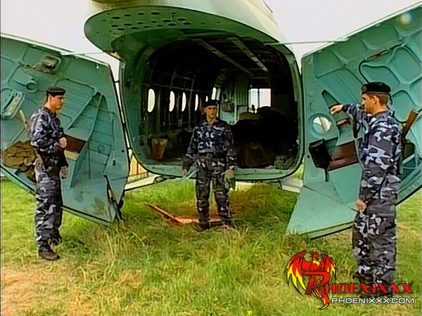 Army hunks Rick Leslie and Fabrice threeway fuck in field