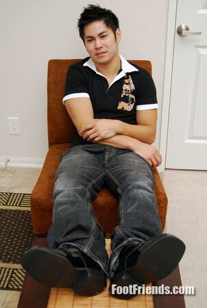 Asian muscle Scorpio shows off big feet in black socks