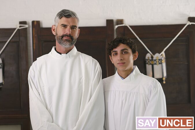 Carter Ford sucks Father Bill Farnsworth's girthy dick in office